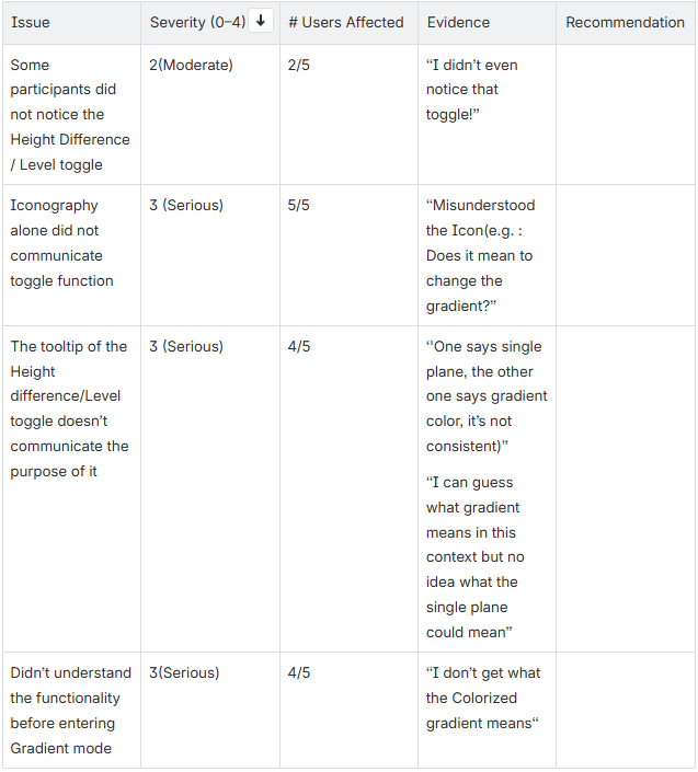 Objective: Assess discoverability, comprehension, and workflow fit of the redesigned Elevation Tool.